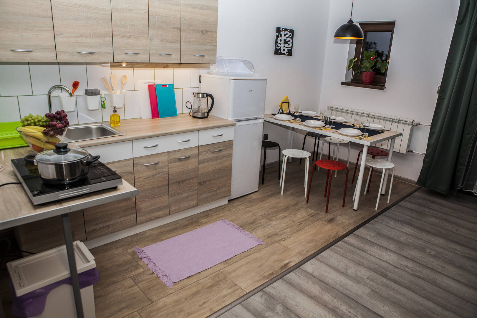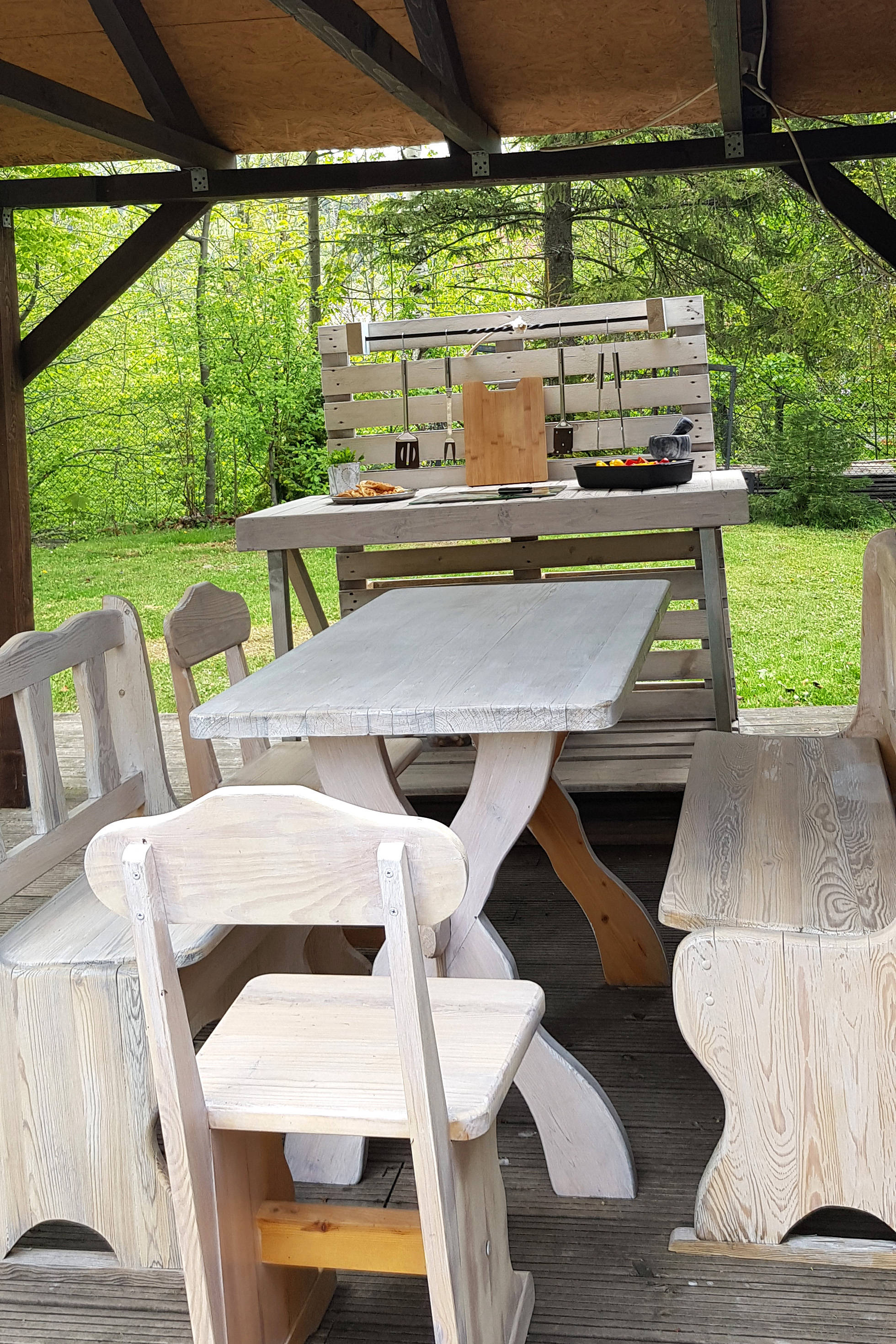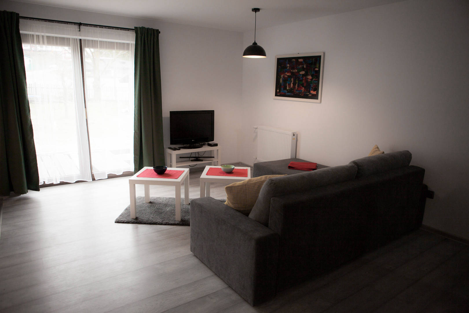 Przez drzwi balkonowe oraz taras można przejść bezpośrednio do pięknego i przestronnego ogrodu pełnego krzewów i drzewek owocowych, który jest do dyspozycji naszych gości. Oprócz pięknych kolorów i zapachów, które pojawiają się w ogrodzie od wiosny do późnej jesieni, znajdą w nim Państwo także szereg udogodnień, które niewątpliwie umilą czas spędzany w naszych domkach. W ogrodzie czeka na Państwa grill, miejsce na ognisko, a także basen, trampolina i piaskownica dla najmłodszych. Dodatkowo, tuż obok obiektu znajduje się plac zabaw, a teren wokół domu jest ogrodzony.