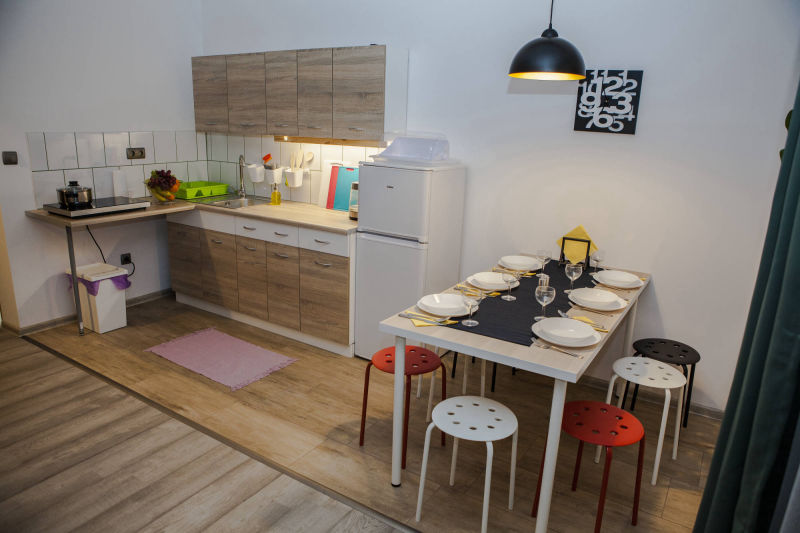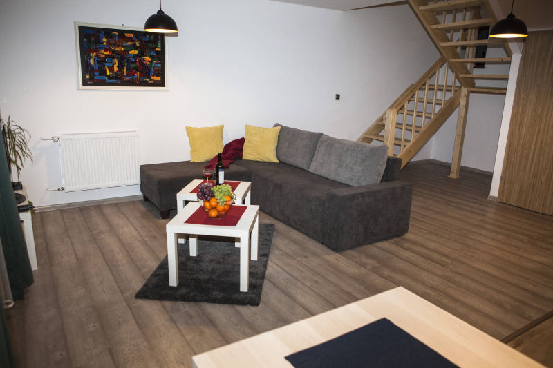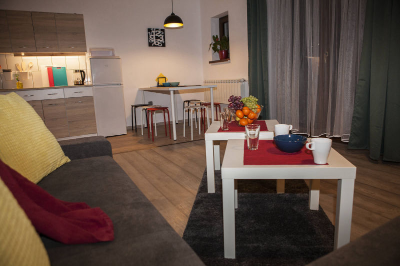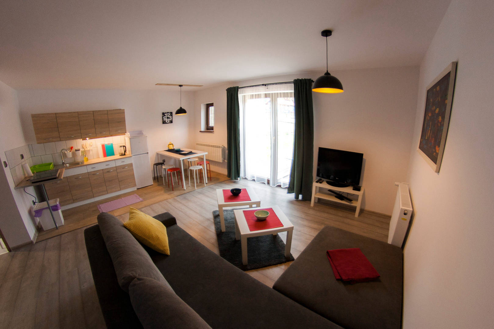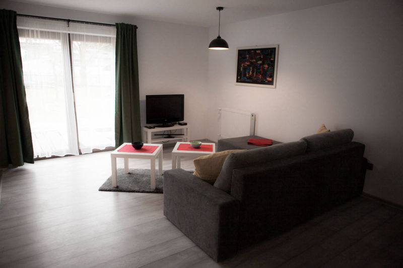 Kompleksowe wyposażenie naszych domków powoduje, że goście czują się u nas jak w domu. W każdym z naszych obiektów znajdą Państwo wygodny salon z telewizorem (z płaskim ekranem), widną i w pełni wyposażoną kuchnię (zaopatrzoną w czajnik, płytę indukcyjną, lodówkę z zamrażarką oraz niezbędne naczynia i sztućce), połączoną z przestronną jadalnią. W naszych domkach spotkają Państwo nowoczesne łazienki z prysznicem i deszczownicą oraz umywalką i toaletą. Przedpokój wyposażony jest w niezbędne akcesoria, takie jak szafka na buty, wieszaki i taboret.